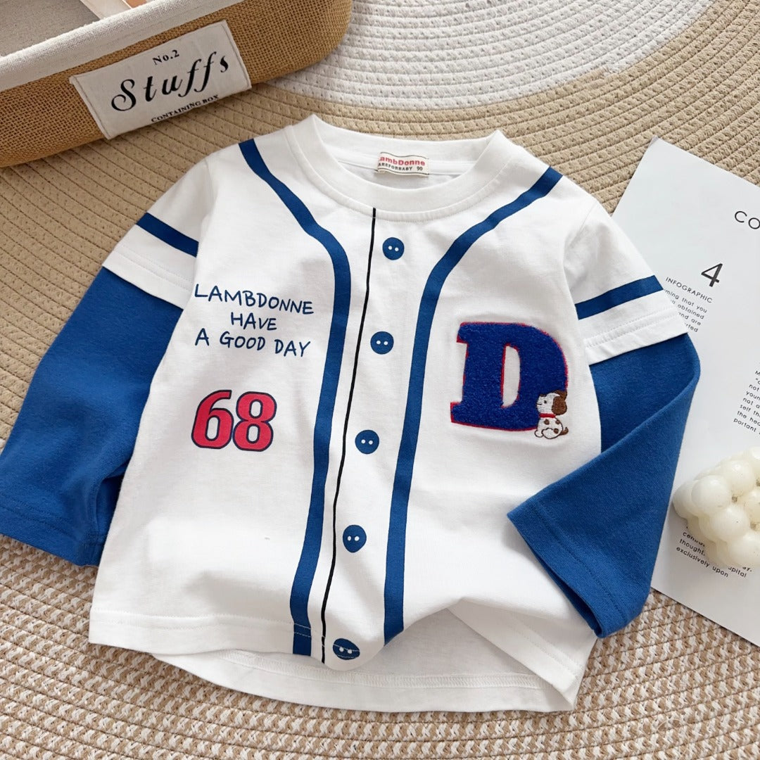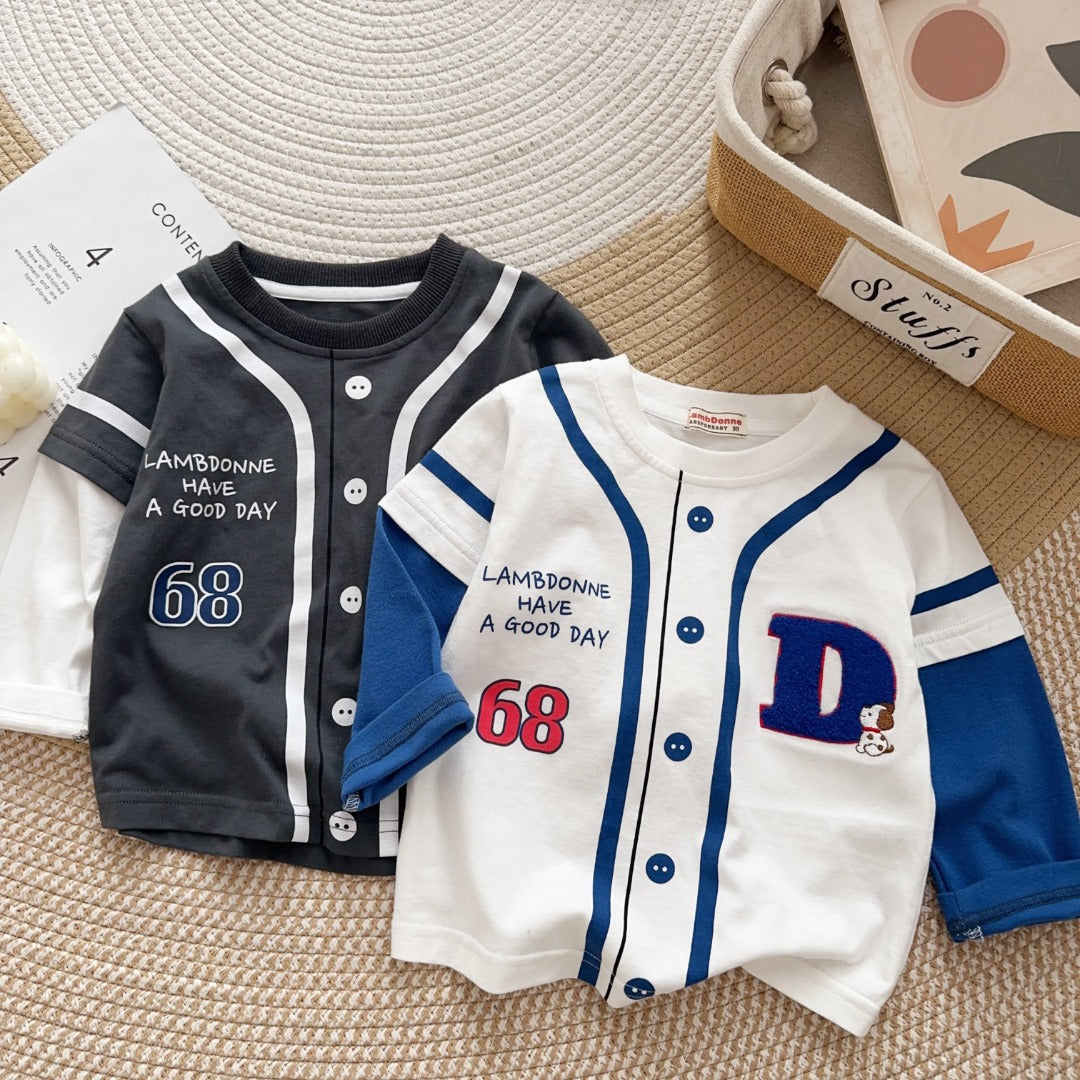 Whether your little one is heading to school, the playground, or just chilling at home, this retro-style jersey top brings serious game-day energy.