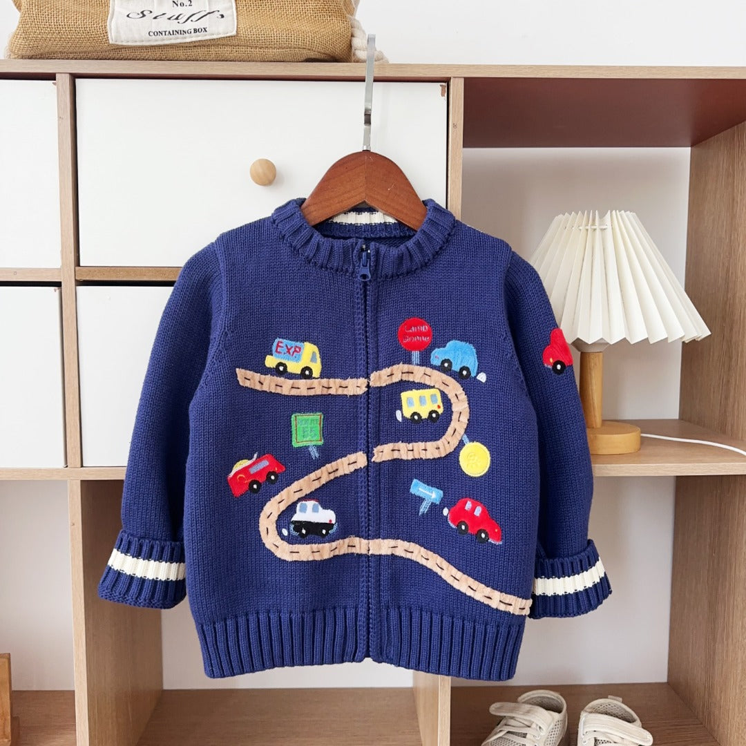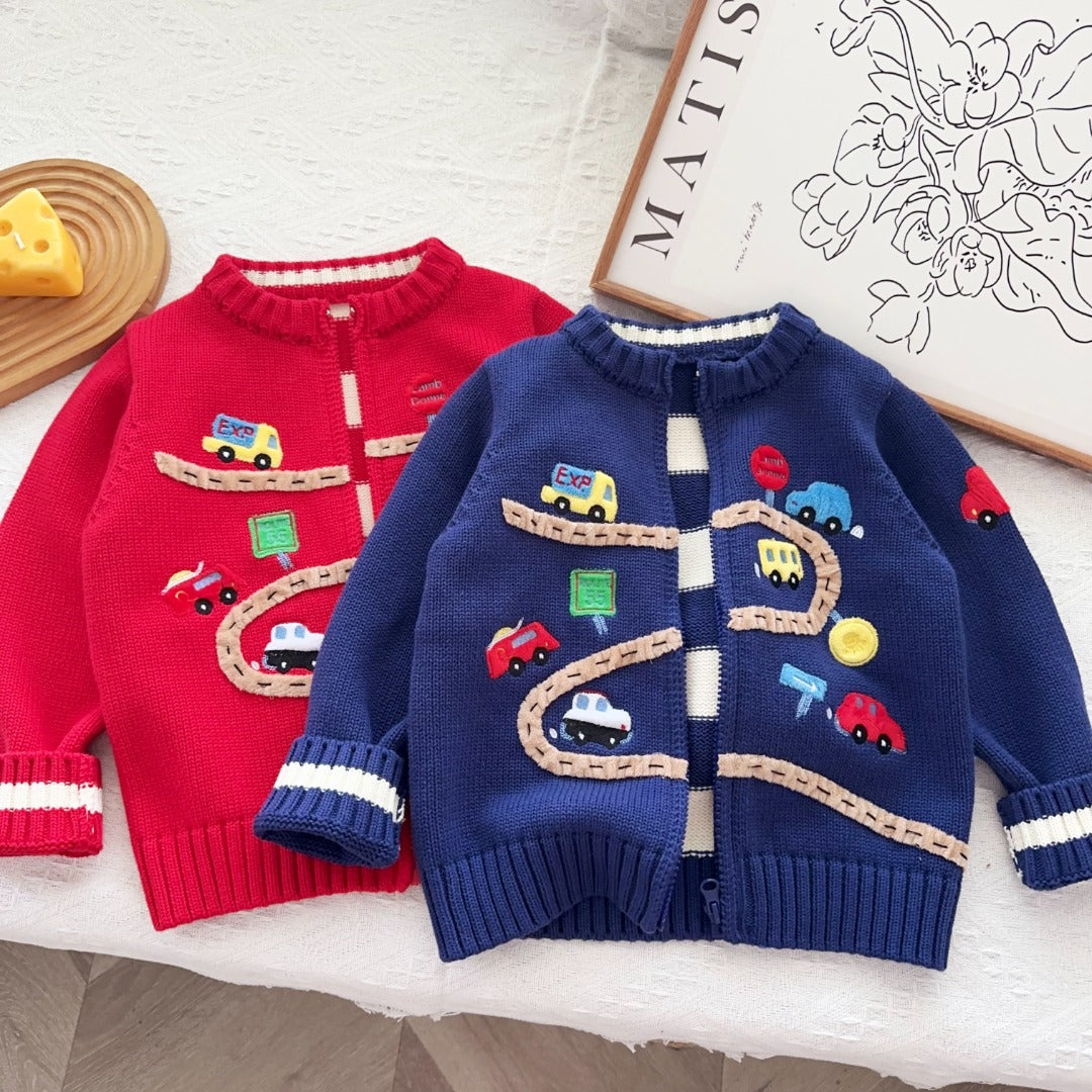 Let your little one cruise into comfort with our Track & Stripe Knit Cardigan – the perfect layering piece for chilly days and cheerful moods! 🎈